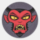 Ilustração de desenho animado de um personagem médio de demônio vermelho com chifres, cavanhaque, olhos amarelos e presas.