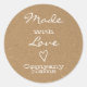 Adesivo Redondo Made with Love Labels Heart Symbol Kraft Paper
