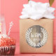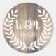 Sele o seu correio com um ar de charme campestre! Estes louros de madeira branca rústica da fazenda estão silhuetados sobre um fundo de tábuas de madeira de celeiro leve. Personalize o texto das iniciais do casal para um visual verdadeiramente personalizado.