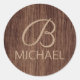 Adesivo Redondo Madeira de grão com nome personalizado monograma