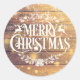 Adesivo Redondo Madeira russa Feliz Flocos de Neve de Natal