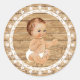 Adesivo Redondo Madeira rustica e Chá de fraldas de rendas.