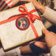 Adesivo Redondo Madona e Menino Natal Vermelho e Dourado Religioso