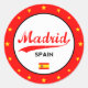 Crachá de Madrid com bandeira de Espanha, forma arredondada. Emblema de Madrid.