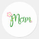 Pequenas flores e folhas de primavera com o texto "Mãe" são destacadas em fundo branco. Clique em "Personalizar" para alterar o plano de fundo para uma cor diferente, se desejar.