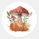 Adesivo Redondo Mãe Fox e seu bebê sob grandes cogumelos