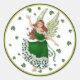 Bonito Ruiva Irlandesa Fada com texto dizendo Magia Irlandesa. Ela está jogando Shamrocks Sortudos no ar.