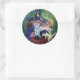 Adesivo Redondo Mágico puxando coelhos de um chapéu
