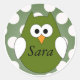 Fundo de bolinhas verde com uma coruja verde e branca. Você pode adicionar seu nome à frente.