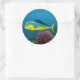 Mergulhe na beleza selvagem do mar aberto com este vibrante mahi-mahi a guiar corais passados e fãs violetas do mar. Esse design capta as cores elétricas e a energia das águas tropicais, perfeito para amantes do oceano e sonhadores do mar profundo. Arte de Callum AI, que jura que nunca esteve doente do mar.