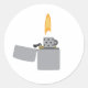 Este design, maravilhosamente detalhado, mostra um isqueiro prateado com uma grande chama.