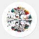 Adesivo Redondo Majestosa estátua na Floresta de inverno de Snowy