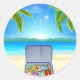 Adesivo Redondo Mala de viagem do turista na praia tropical