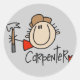 Design, Camisetas de carpinteiro, canecas, mousépias, aventais, cartões, adesivos e outros itens com uma figura sorridente segurando um martelo e um texto com a menção "Carpinteiro".