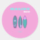Adesivo Redondo Malibu, Malibu Beach, California, Preppy, Pink