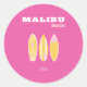Adesivo Redondo Malibu, praia Malibu, Viagem Art, Pré-ppy, rosa