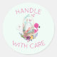 Adesivo Redondo Manipulação com cuidado com ovos Flamingo e coelho