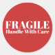 Atenção à Mão Frágil Vermelha com um adesivo redondo de cuidado.