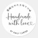 Dê aos seus produtos cozidos e criações feitas à mão um toque de acabamento polido com este adesivo mínimo "feito à mão com amor". Projetado em um estilo branco e preto limpo com letras de script e um detalhe cardíaco doce, é a maneira perfeita de selar embalagens ou adicionar um sotaque profissional aos seus produtos. Personalize-o com o nome da sua empresa ou cozinha para que a sua marca se sinta quente, atenciosa e memorável. Cada design do meu compro inclui um detalhe de assinatura, uma verdadeira tipografia japonesa. Este toque cultural adiciona arte e originalidade, separando sua marca enquanto mantém a aparência elegante e simples. Ideal para padarias, cozinheiros de pastelaria e proprietários de pequenas empresas, estes adesivos são versáteis o suficiente para biscoitos, bolos, pão, ou quaisquer bens caseiros! Embalado com cuidado, Junko do Japão.