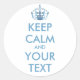 Adesivo Redondo MANTENHA CALMA E SEU TEXTO - Alterar fundo branco