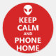 Uma paródia de ficção científica de um clássico design em vermelho e branco. Quando a invasão da alienígena não for tão excelente... mantenha a calma e ligue para casa.