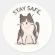 ADESIVO REDONDO MANTENHA-SE SEGURO COM UM GATO DIVERTIDO