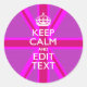 Seu personalizado "Fique Calmo" dizendo em uma vibrante decoração de união rosa-rosa. Um estilo "Manter Calmo" personalizado dizendo em um presente gentil. Humorístico ou caprichoso experimente suas palavras criativas em duas linhas editáveis de texto. Lembre-se de usar letras CAPITAL para obter melhores resultados. Use o link "Perguntar a este Designer" para entrar em contato conosco com suas solicitações especiais de design ou para obter assistência com suas necessidades de personalização.