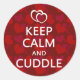 Fique calmo e abraço. Um Dia de os namorados bonito e engraçado com a tendência popular de cultura "mantenha a calma e o carregar". Dois corações vermelhos e brancos bonitos enviam uma mensagem sentimental para o seu amado. Corações vermelhos escuros e texto branco é excelente para um namorado, namorada ou amigo peludo que ama se abraçar e se aproximar. Todos os Designs Copyright © 2012 www.CuteComfy.com