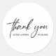 Personalize os nomes e a data do evento neste adesivo redondo simples e moderno, com um script de estilo de anotações para as palavras "Obrigado".