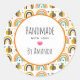 Adesivo Redondo Manuscrito com Abelha de Bumble e Padrão Rainbows