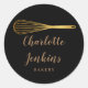 Adesivo Redondo Manuscrito Preto E Dourado Da Padaria Whisk Patiss