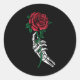 Adesivo Redondo Mão De Esqueleto Segurando Uma Rosa vermelha De Fi