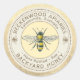 Rotule seu próprio mel, velas, cera de abelhas e muito mais com este adesivo de mel preto e amarelo de abelha. Personalize com seu nome de empresa apiário e localização/endereço na borda superior do rótulo e seu nome de produto com descrição (ou nome de mel e varietal) abaixo. Duas abelhas vintage adicionais atuam como pontos de bala neste design.