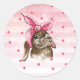 Adesivo Redondo Mão pintada de coelho rosa