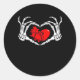 Adesivo Redondo Mãos Assustadoras Do Esqueleto E Coração Vermelho