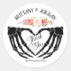 Adesivo Redondo Clássico de Casamento com Esqueleto Gótico Claro. © Dark Heart Desires. Este Adesivo de Casamento tem mãos de esqueleto escuras como um forte elemento de design para dar aquele sabor gótico delicioso, mas ainda é feminino por natureza com todas as belas flores. Você pode personalizar este Adesivo para o seu próprio casamento usando a Ferramenta de Design. Basta clicar em Personalizar Este Design. Caso deseje adquirir outros itens relacionados ao casamento ou papelaria que fazem parte deste conjunto, você pode encontrá-los aqui: https://www.zazzle.com/collections/light_gothic_skeleton_hands_wedding_set-119208151725658267?rf=238387807314068901