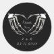 Adesivo redondo clássico de mãos góticas de esqueleto personalizadas em forma de coração