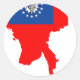 Adesivo Redondo Mapa de bandeira de Mianmar