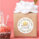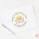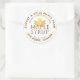 Etiqueta de aranha branca redonda simples e elegante com as palavras "Xarope de carteiro" num texto dourado metálico. Nome comercial e localização em texto gravado. Fronteira de linha tracejada em ouro. Campo de formulário editável para Grau de Xarope de Maple e peso líquido. Folha amarela de açúcar no outono tingida com laranja.