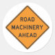 Esta design é a máquina de estrada à frente. O sinal de estrada é laranja e alerta para máquinas rodoviárias. Este sinal da máquina rodoviária à frente parece excelente neste adesivo