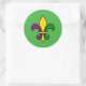 Design com um padrão sem costura com pulgas-de-lírios (flores de lilly) nas cores de New Orleans Mardi Gras; púrpura, ouro e design verde sobre fundo verde