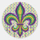 Adesivo Redondo Mardi Gras fleur de lis, verde-púrpura