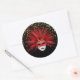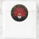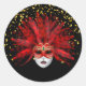 Este adesivo redondo de grande tamanho é mostrado numa festiva máscara de celebração Mardi Gras impressão. Personalize este item ou comprar como está.