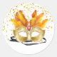 Este adesivo redondo de grande tamanho é mostrado numa festiva máscara de celebração Mardi Gras impressão. Personalize este item ou comprar como está.