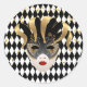 Este adesivo redondo de grande tamanho é mostrado numa festiva máscara de celebração Mardi Gras impressão. Personalize este item ou comprar como está.