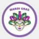 Este adesivo redondo de grande tamanho é mostrado em um festivo design impressão de celebração da máscara Mardi Gras. Personalize este item ou comprar como está.
