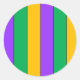 Adesivo Redondo Mardi Gras Stripes Padrões Púrpura Amarelo Verde