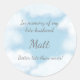 Este adesivo mórbido e engraçado tem uma cena de céu azul celestial, nuvens sonhadoras, estrelas cintilantes e as palavras "Em memória do meu falecido marido [inserir nome] Melhor tarde do que nunca!". Perfeito para aqueles que esperaram muito tempo por um parceiro.