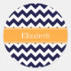 Adesivo Redondo Marinho Azul Branco Chevron Cantaloupe Nome Monogr