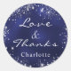 Um fundo azul clássico do marinho, a cor azul é irregular. Decorado com pó falso de cinza prateada. Personalize e adicione seu primeiro nome. Com o texto: Amor e Obrigados.